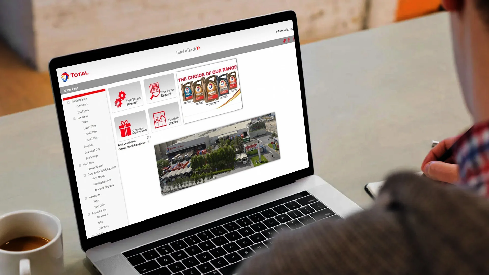 In parallel, complaints, giveaway items, project studies, and signage requests were being handled manually through spreadsheets, email chains, and siloed systems. There was no shared source of truth. Total’s marketing, operations, and logistics teams needed an integrated platform for accountability.