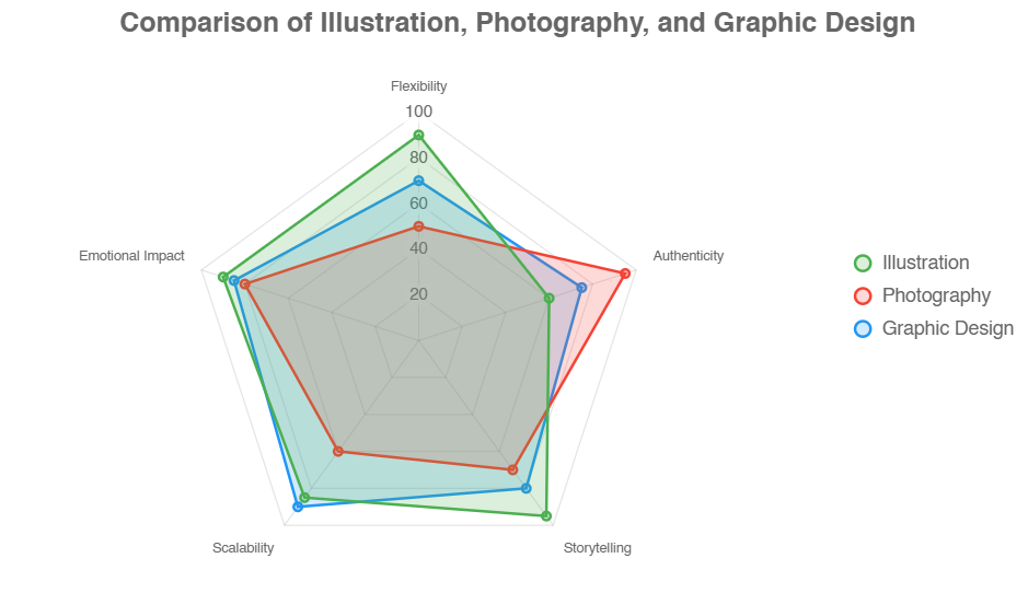 What are Illustrations? They are one of several powerful tools in visual communication, alongside photography and graphic design, each with unique strengths and ideal use cases.